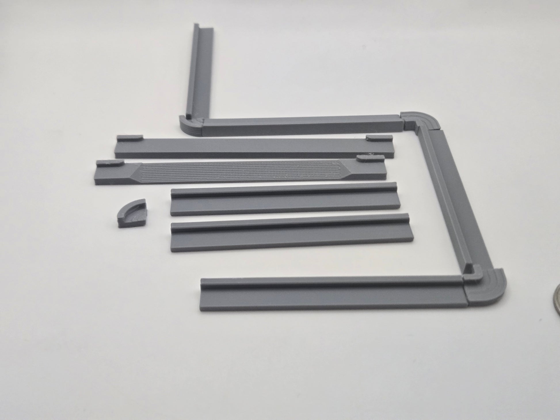 This is a 12 piece 30" curb set in 1/64 scale. This set consists of 6 16' sections of curb with 2 left turns 2 right turns and two 15' drive way entrances one flush with the curb and one sloped. This curb has the same profile and pairs with my storm drain catch basin curb inlets.