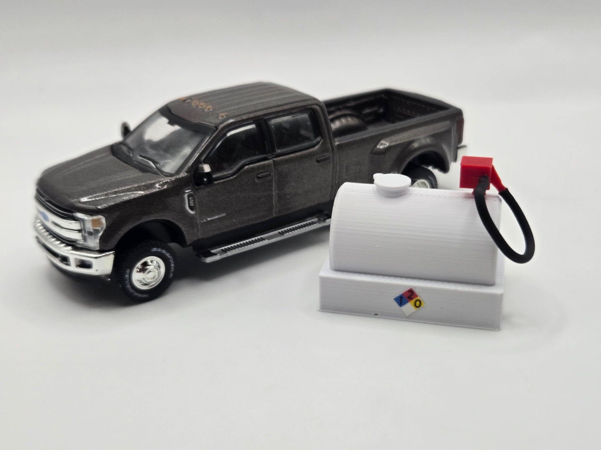 This is a 1/64 scale 800 gallon diesel tank. This can add great detail and realism to your collection, layout, or diorama!