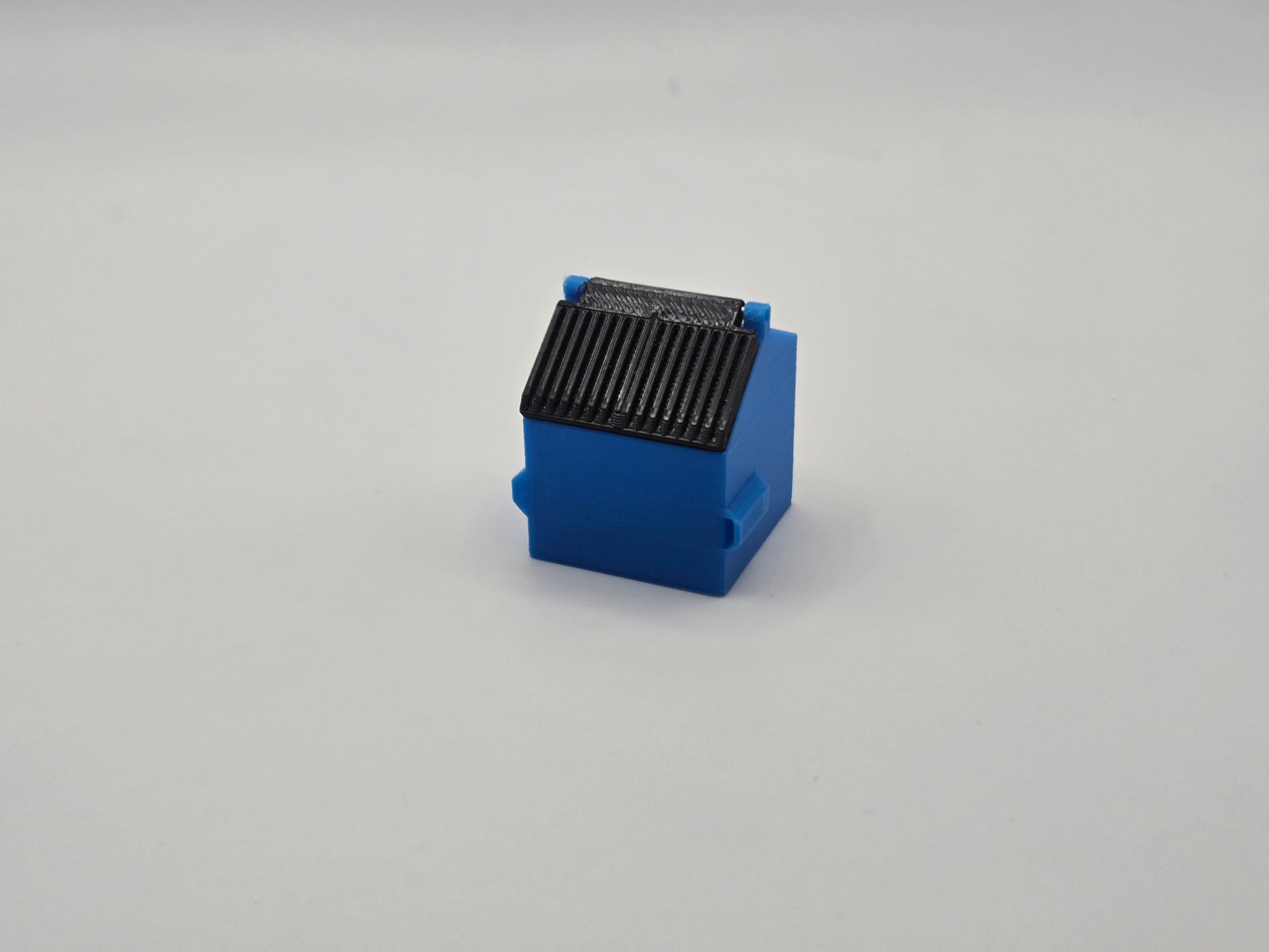 The dumpster is 3D printed. It has a sturdy construction but does have small fragile pieces and should he handled with care