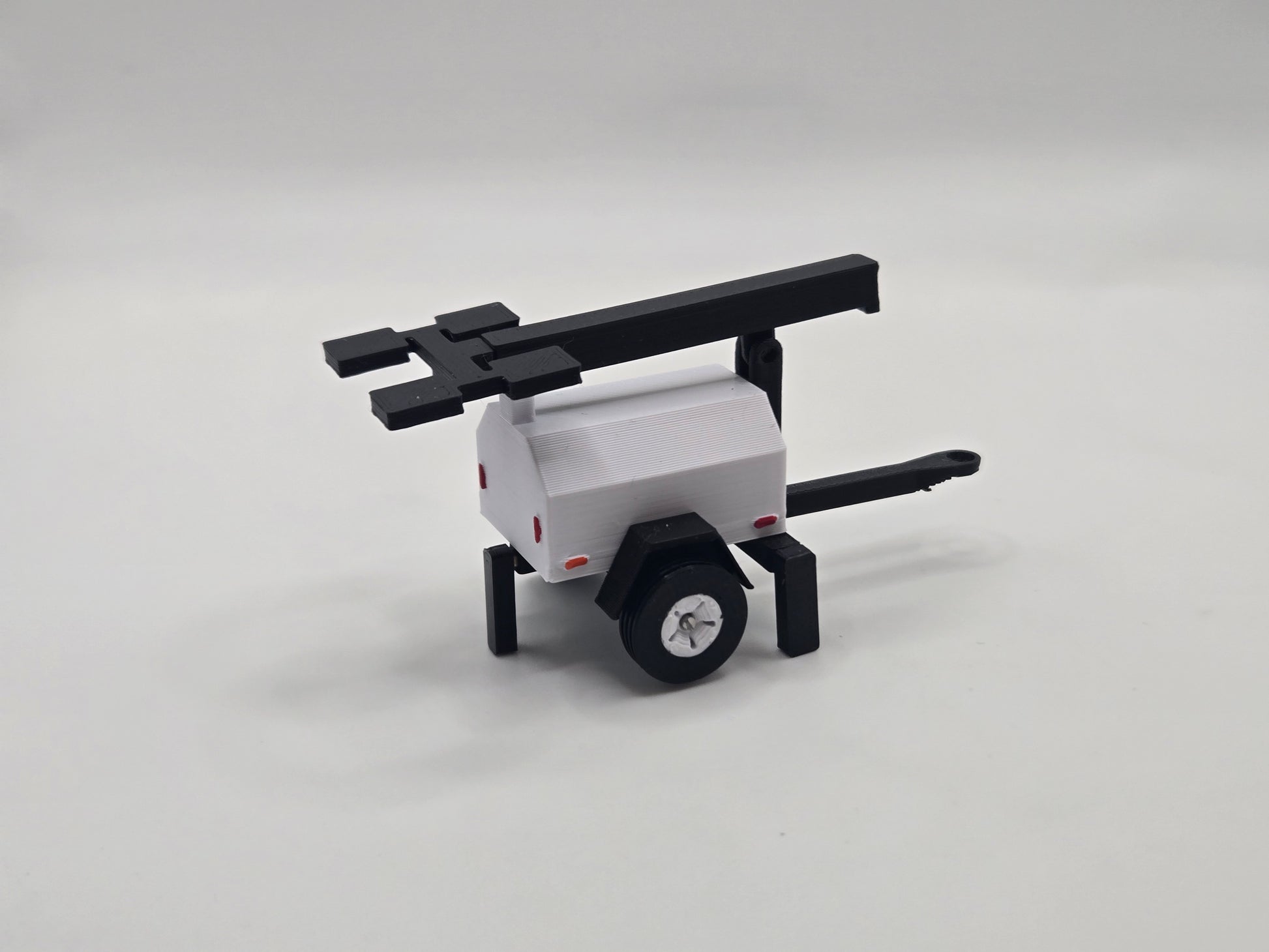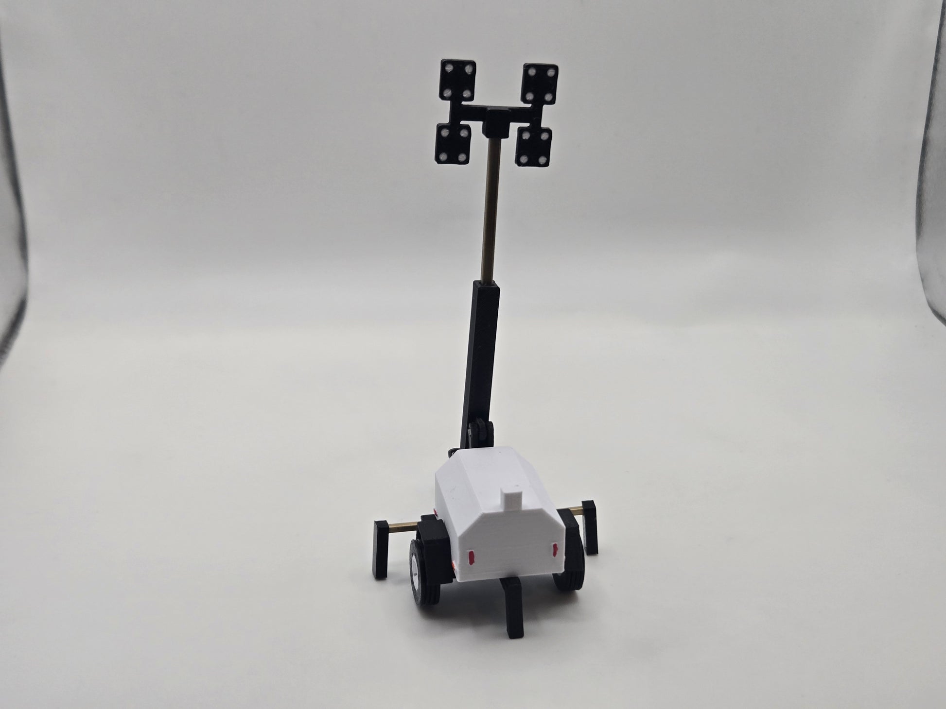 3D printed LED Light Tower with telescopic Light fixture and posable stabilizers.